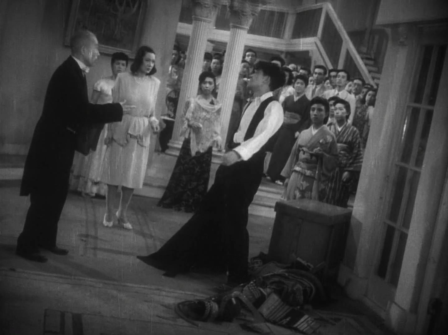 The class barrier has been fully dissolved, and Tadahiko too permits himself to marry his long-term mistress, the geisha Chiyo (Chieko Murata), who declares that she doesn’t care about his loss of status and invites him to live with her if he has to sell his house. But it seems as if Tadahiko can’t let go of his ancestral legacy nor his childhood home. In truth, this Western-style country house by the sea can only have been built after the Meiji Restoration which means it’s under a hundred years old and most likely built by Tadahiko’s father, the gentleman in European-style military dress in the portrait. As such, it was likely constructed to look forward to a new era as the samurai class rebranded itself into a European-style aristocracy. Tadahiko’s older sister, married to a lord who’s faring better in this new world, tells an enraptured collection of younger women of the time she danced with a prince a year after the Russo-Japanese war when she was only 19. But this will be the last ball at the Anjo House, in memory of a “beautiful way of life” that has been now been eclipsed.