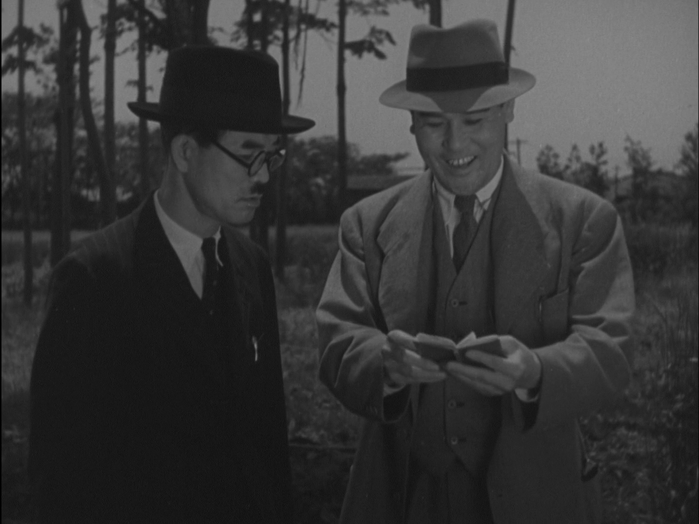 Their boss, however, thinks the pair of them are idiots and takes advantage of their loyalty towards him by getting them to dig his garden and complete other inappropriate personal tasks. He gives them a pair of tickets for an onsen resort as a kind of reward, but once they get there, they realise he’s done it to get them to bring back his “luggage” which is actually black-market supplies for his daughter’s birthday party. The boss’ superiority over them is signalled by his large Western-style house, while Ooki and Aono both live in humbler, traditionally Japanese homes. Aono is a widower with four children though he can’t remember how old they are the oldest two daughters are of marriageable age. The boss even requests the eldest, Hatsuko’s presence at the party, but it quickly transpires that he wasn’t inviting her but asking her to do unpaid serving work signalling the class disparity between the middle-ranking salarymen and the boss.
