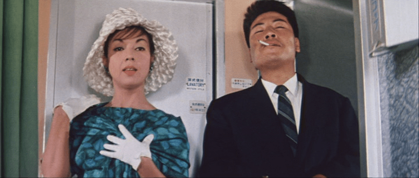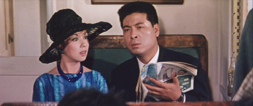The film does open rather salaciously with a closeup of a woman’s legs in fishnet tights followed by a kickline, and Machiko Kyo does indeed play up her sexy image to play the beautiful pickpocket who uses her body as a tool to mesmerise much to Haruko’s disapproval. Besides Kita, she’s followed by a rather louche writer (Eiji Funakoshi) who declares that he doesn’t need models, though evidently captivated by her, while declaring himself too successful and overworked. He doesn’t want more money, he just wants some free time and no one seems to want to let him have any, though he doesn’t exactly get a lot of writing done on this wild goose chase looking for Saya’s missing hometown. Absurd as it is, this unlikely rom-com between a beautiful pickpocket and bumbling policeman does at least end in a moment both of constraint and liberation as Saya finds herself content with her famous legs cuffed and Kita content to wear a different hat as they ride off on a decidedly unusual honeymoon.