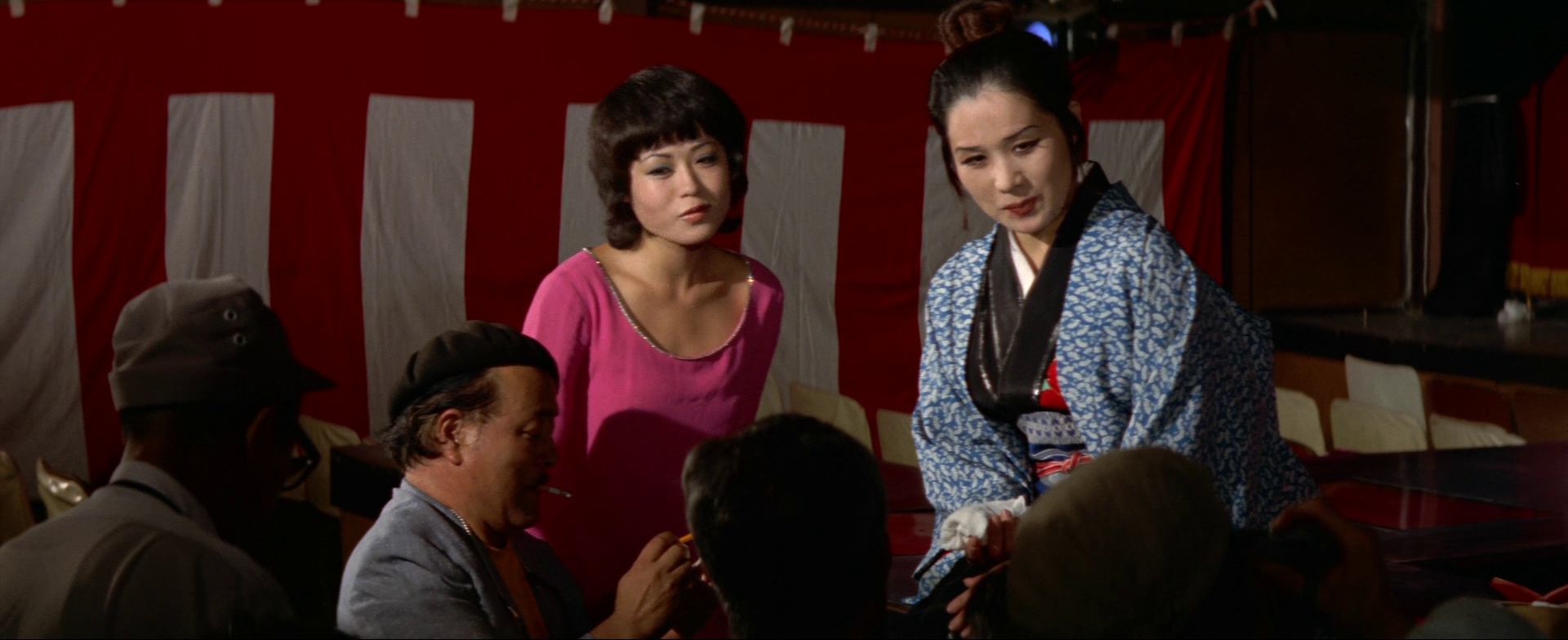 Trying to curry favour, she tells Sayuri that she identifies with her backstory of being an orphan that they may have grown up in the same children’s home in Saitama despite her broad Osaka accent. She also tells her husband, recently released from prison after being convicted of murder, that her father was sentenced to death, though this appears to be another detail pinched from Sayuri’s biography, which may not be true in her case either. Harumi later admits that nothing she’s said about herself is actually true, which could also be a lie, as she otherwise seems intent on stealing Sayuri’s identity and with it the top spot at the club. After getting arrested and fined, she tells her friend that she’s quitting their lesbian floorshow show because, she insensitively says, the lesbian stuff’s just for talentless hacks and she’s apparently turned off by other women’s genitalia.