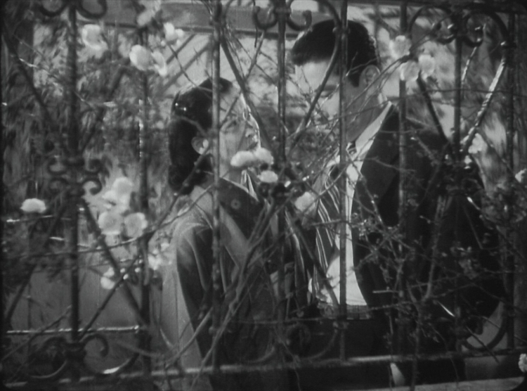“Because of the blood of a shameless guy, my body became dirty without knowing any pleasure” he complains, hinting at a metaphor for his wartime contamination dragged into a conflict by forces outside of his control. The roles he plays are ironic, firstly a healer in a place of death and destruction and then as a deliverer of life at his father’s obstetrics clinic though he fears he will never have children of his own. He is in a sense trapped by his past as shown in the repeated visual metaphor of the closed gates outside the clinic on which the flowers that represent his relationship with Misao and hope for the future gradually wither. Minegishi tells him she’s in love with him and is willing to accept the risk of his disease to alleviate his desire, but he once again chooses to say nothing, immediately returning to business. As his father points out, he has (for the most part) resolved to channel his resentment into helping those less happy than himself but if he had been happy he may have become a snob, indifferent to the suffering of others. In some ways his problem is the familiar giri/ninjo conflict as he fights a silent duel within himself between his natural desires and his better nature but it’s also a battle against the slow poison of the wartime legacy through compassion and selflessness that may, like his inescapable illness, eventually drive him into madness.