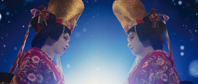 What does it mean to commit yourself so entirely to your art that you become it and effectively cease to exist? Playing the role of Ohatsu in Chikamatsu Monzaemon’s Love Suicides at Sonezaki, Kikuo (Ryo Yoshizawa) asks if Ohatsu’s lover Tokubei is really resolved to die for their love. The scene is intercut with his brother and rival Shunsuke leaving the theatre, led away by Kikuo’s girlfriend Harue (Mitsuki Takahata), just as Ohatsu leads Tokubei towards their mutual fate, as if Shunsuke were agreeing that he is not resolved to give his all to art in the way Kikuo evidently feels himself to be, at least in this moment.