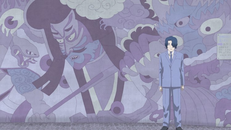 In that sense, it’s a place Karin discovers as much as it’s home to cure her sense of rootless abandonment. The rotoscoped animation and live-recorded dialogue lend a sense of uncanniness to the beautifully animated backgrounds which effortlessly evoke a sense of serenity in the timelessness of a summer in small-town Japan. The juxtaposition of the ancient and the modern, Jizo playing Nintendo Switch, yokai working at the golf course which is perhaps a manifestation of the disruption wrought on the natural world by human endeavour, echo a kind of cosmic irony but also an odd kind of warmth in the strangeness of the world around us with its immortal cat spirits and friendly supernatural creatures that seems a far cry from the sterility of the city with its violent loan sharks and indifferent friends.