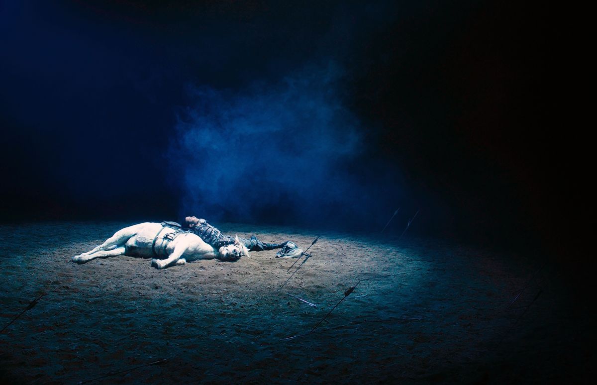 Nevertheless, it’s largely for Chinese tourists that Saina is obliged to parade his culture. He takes part in Medieval Times-style dinner shows where the audience is repeatedly reminded they can buy drinks for their favourite riders and carrots for the horses, though the riders and horses almost certainly don’t see them. Saina rides dressed as a heroic Mongol warrior, but has dreams of himself dying on the battlefield alone with his white horse. His ex-wife Tana encounters something similar, as her Chinese boss makes her serve drinks at dinner parties with Chinese businessmen while insisting she sing a Mongolian song for the local colour. Later Saina gets a job at a ranch where city slickers come to experience life on the Steppe, but complains that the tourists ride the horses too hard and end up injuring them. They don’t have a connection to the land or know how to treat animals, while the ranch owners exploit the horses in the same way they exploit Saina, taking little interest in their physical wellbeing only their ability to work. At the show, Saina discovers his horse is injured and asks to switch to another one to let it rest, but encounters resistance in being told to get higher approval from the boss.