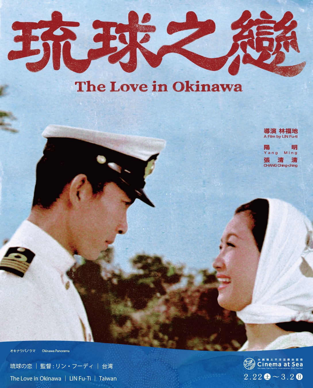 Shot at the same time as The Love in Okinawa, Sunset Over the Horizon (夕陽西下) is another Okinawan and Taiwanese co-production directed by Lin Fu-ti assumed lost until its discovery in San Francisco’s Chinatown in a Mandarin-dubbed print. Unsurprisingly, it features many of the same cast members and locations and even has a similar theme of impossible love but is more ambitious in scope incorporating both dream sequences and flashbacks to explore the changing relationship between Japan and Taiwan.