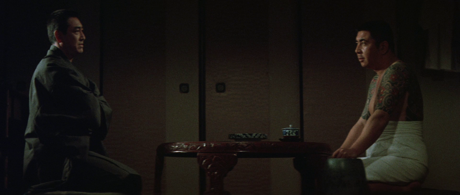 There is however a greater tragedy in play. The film opens in the spring of 1934 with a villain remarking that it’s absurd to restrict oneself to one’s home terrified while a sword and the Japanese flag appear behind him. The catalyst for all this drama is Japan’s imperialist expansion. Yakuza fixer Senba (Nobuo Kaneko) and the shady Kawashima have hatched a plan to get all the yakuza clans to unite in a “patriotic” mission to traffic drugs to the frontlines looting as they go. Noble boss of the Tenryu Awakawa refuses, reminding them he’s just a simple gambling man and has no desire to get involved with politics before collapsing with a stroke. With Awakara alive but bedridden and no longer able to communicate effectively, the Tenryu decide to nominate a successor. The ideal candidate, Nakai (Koji Tsuruta), declines the offer on the grounds that he is a transplant from another gang in Osaka and thinks it would be inappropriate for an outsider to lead the clan. He proposes that his sworn brother, Matsuda (Tomisaburo Wakayama), should be appointed, though he is currently surviving a prison sentence so a caretaker should serve in his stead until his release. Most think this sensible though the proposed caretaker, Ishido (Hiroshi Nawa), also declines given the rules of seniority despite the fact that he is Awakawa’s son-in-law and so dynastic succession would also seem permissible.