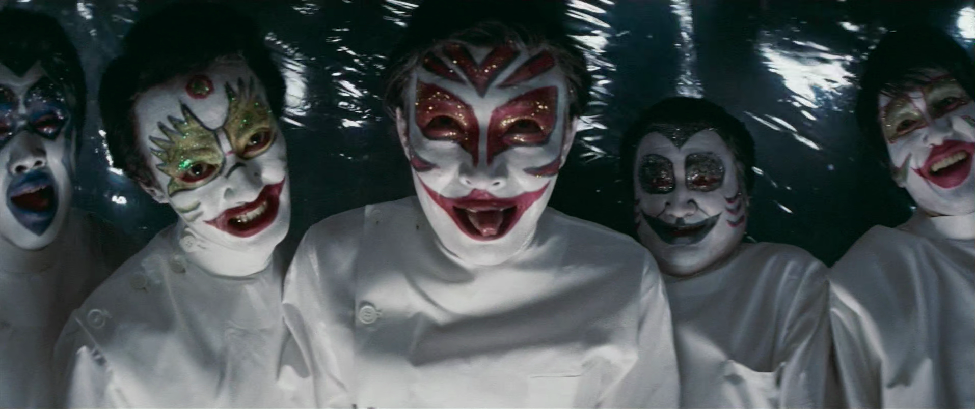 Arriving back at the prison after a failed escape attempt, this Nami (Yoko Natsuki) has an all new backstory as an idealistic nurse whose doctor boyfriend was given shock therapy that destroyed his mind and left him in a vegetative state after threatening to blow the whistle on his hospital’s decision to let the man at the centre of a growing political scandal quietly pass away. These facts are first communicated to us through a surreal fever dream Nami has presumably caused by an infected wound on her leg. She first dreams herself frolicking cheerfully with the doctor before frightening figures of darkness pull him back into an abyss while terrifying clowns leer over and then rape her. She’s only saved from her life-threatening medical condition by the intervention of Kiyomi (Kaori Ono), a fellow prisoner who feels indebted to her because of a blood transfusion she received three years earlier before everything in Nami’s life went wrong.