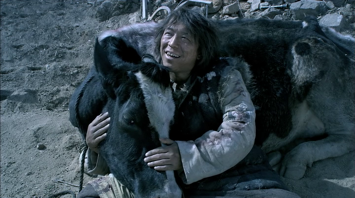 To that extent, the Japanese aren’t all that bad. One of them, whom Niu Er finds hiding in a tunnel, used to be a dairy farmer and shows Niu Er how to treat Jiu’s illness which is why Niu Er decides to save him and take him with them to their place of salvation in a cave in the mountains. But a nationalist is already hiding there and the pair end up killing each other. The film seems to ram the point home that there was no real difference between these men who had no particular reason to fight when Niu Er ends up burying them together in a makeshift grave. Setting himself apart from all this war and absurdity, he resolves to stay above it by living in the mountains with Jiu and planting new grain up there for them both to live on.