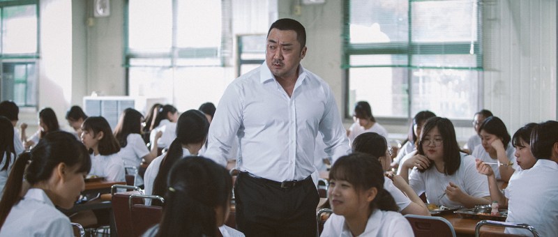 What Ki-chul (Ma Dong-seok) and high schooler Yu-jin (Kim Sae-ron) have in common is that they’re both outsiders. Yu-jin transferred to the high school from Seoul and has been branded a troublemaker by the judgmental teachers. But despite the school’s seeming authoritarianism, the pupils have little respect for the school system and openly flout the rules by smoking on school premises and being rude to the staff. It transpires that Ki-chul has basically been hired as a kind of muscle, charged with getting students who haven’t paid their fees or dinner money to cough up ahead of an upcoming audit of the school’s finances. Many of the students he approaches brush him off as if they simply don’t intent to pay, but the school doesn’t seem to be interested in finding out why they might not be able to or if there are problems at home. Yu-jin too rolls her eyes he asks her, but in her case she’s unwilling to finance an institution that’s not doing anything for her even if as Ki-chul advises her they won’t let her graduate if she doesn’t.