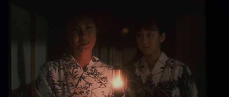 If Muroi saw the haunted film as a child, it was because the ghost within it chose to broadcast herself by hijacking the airwaves. As his friend points out, however, perhaps he just saw a newspaper report about an actress dying in an on-set fall and saw it in his mind, creating a movie of his own or perhaps a waking nightmare that continues to plague him into adulthood. In any case, the film he’s trying to make is a wartime melodrama rather than a ghost story, but it’s one that’s clearly built around dark secrets and hidden desires. Hitomi (Yasuyo Shirashima) reveals that her character killed her mother in the film to take her place and later kills a deserting soldier with whom she’s been in some kind of relationship that the younger sister threatens to reveal in fear that should the villagers find out they’ve been hindering the war effort by hiding a man who’s shirked his duty to the nation they’ll be ostracised and people will stop sharing their food with them.