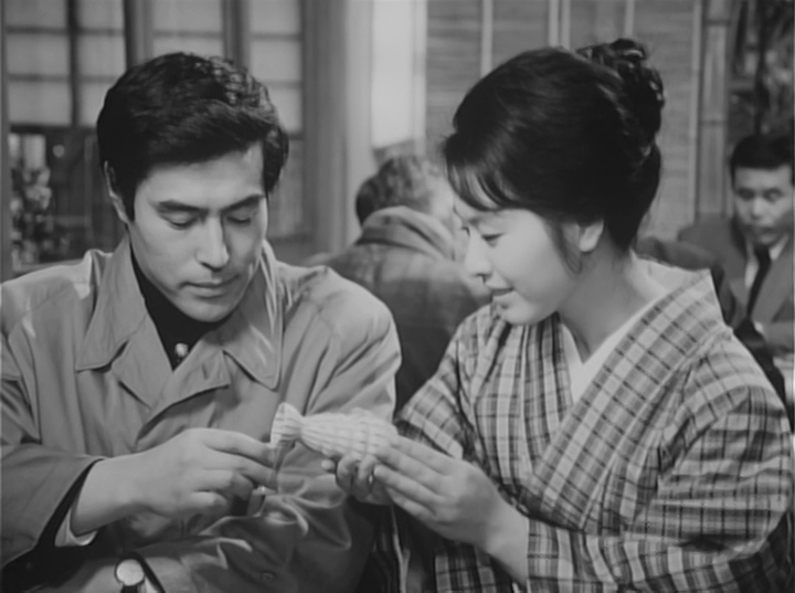 It is perhaps this sense of frustration and impotence that draws Shoji into an affair with a younger woman, Chiyo (Keiko Kishi), who is admittedly very pretty but seems to hold little interest for him aside from her youth and beauty. Chiyo openly pursues her older colleague, declaring that she doesn’t care he has a wife but has come to hate her after the first time they slept together. Shoji meanwhile remains guilty and conflicted. He evidently continues seeing Chiyo, lying to Masako that he’s visiting a sick friend, but otherwise regards her as an irritation. When his co-workers figure out what’s going on they try to stage an intervention, but Shoji doesn’t show up and Chiyo angrily denies everything before arriving at Masako’s looking for Shoji only this time he really is out visiting a sick friend.