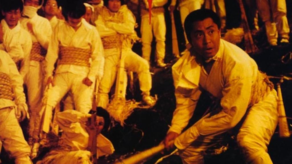 Like Kambei, Katsuhiro had occupied a slightly liminal position because of his relative youth, neither boy nor man. He first encounters Shino while marvelling at the natural beauty of the forest, only to berate her for doing the same. “Is this any time for an able-bodied man to be picking flowers?”, he ironically asks her, yet he is repeatedly forced back towards conventional masculinity as marker of adulthood virtually ignoring her when tasked with carrying a dummy to the ridge, while she later returns the same gesture reassuming her femininity in joining the rice planting, a peasant woman once again. “What’s wrong with two people in love?” the wounded Rikichi (Yoshio Tsuchiya) asks Manzo, trying to smooth over this moment of cross-class crisis, only for Monzo to ask what he’s supposed to now his only daughter has become “damaged goods”, unfit for marriage in a fiercely patriarchal society in which it is impossible to survive without a husband.