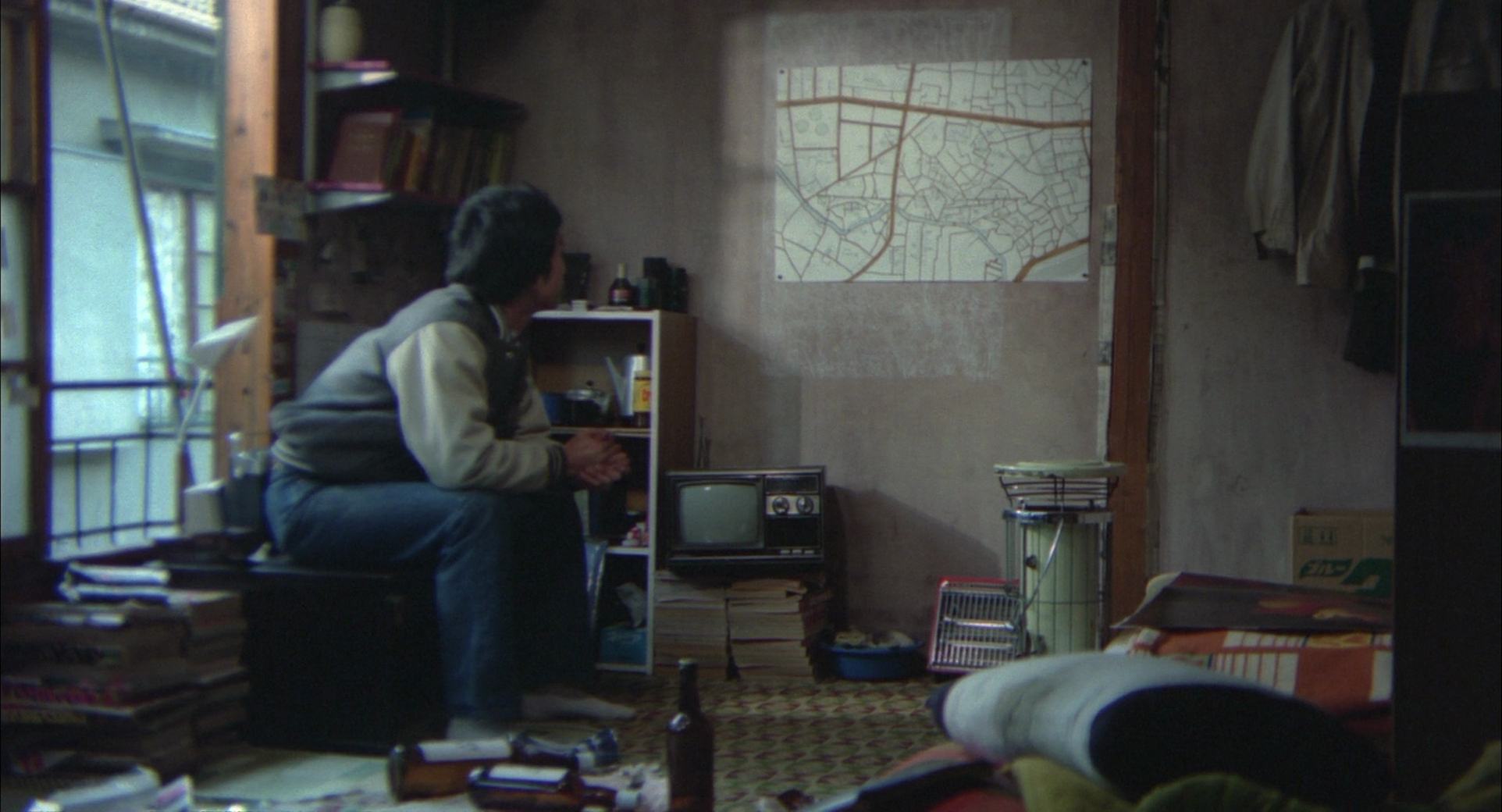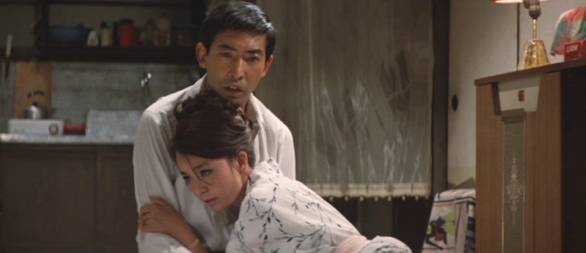 Even Yumeko (Chikako Aoyama) chuckles that Junko sounds like a girl when he says he wants to see the ocean while they’re driving around. “Junko” is ordinarily a girl’s name. He picked it up as a kind of hazing based on an alternate reading of his name kanji. She says the same thing again when he reveals he’s never brought a girl back to his place before, probably because it’s in a disused building he was given to manage where he’s surrounded by junk like an old barber’s chair and pinball machine while the figure of Humphrey Bogart in the Maltese Falcon looks down at him from a poster as if embodying his unattainable gangster dreams. As masculine icons go, Junko is also plagued by his uncle, Mizuta (Joe Shishido), a legendary gangster and representative of old school yakuza who take the code seriously and wouldn’t put up with people like Junko’s colleagues who engage in “zooming”, deliberately shooting themselves to get out of being ordered to carry out a hit. He’s not overly impressed by Junko either, unable to understand why he’d become an errand boy for a petty gangster rather than be his own boss as a small-time crook.