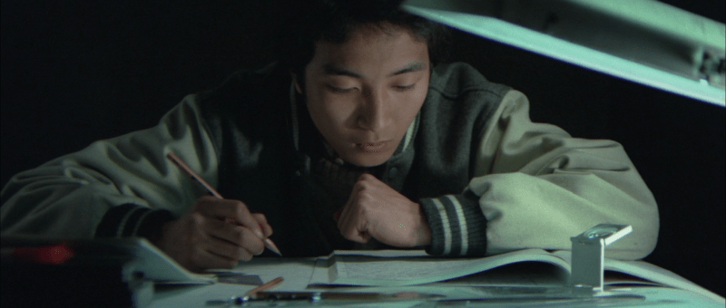 Junko (Sho Aikawa) is an unlikely hero. With a rockabilly quiff and a red jacket, he’s nominally the driver for gangster Yoshikawa (Toru Minegishi) which means he gets to drive his limo and act like a big man for a while making calls on his carphone. But as much as Junko shows off to his girlfriend Noriko, a hostess at a Korean bar, by instructing the landlady not to clear up his empty bottles because they’ll make a good weapon in an emergency, he’s otherwise something of a joke. The limo ends up getting “stolen” by a young woman who just likes American cars and sexually aroused by gunfire.