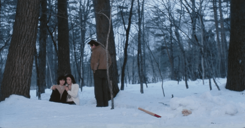 Counter-intuitively succession intrigue has little to do with the central mystery which begins to unravel when Hiroko is attacked on the eve of her wedding by a strange woman who had previously tried to warn her off Masakazu and kills her in self-defence. The body, which we can identify as that seen buried in the snow in the solarised green-tinted opening sequence, is taken care of by Mrs Sekine’s right hand man Kinoshita (Hayato Tani), but Hiroko begins to have her doubts after catching sight of a woman who looks exactly like the one she killed at the local ski resort.