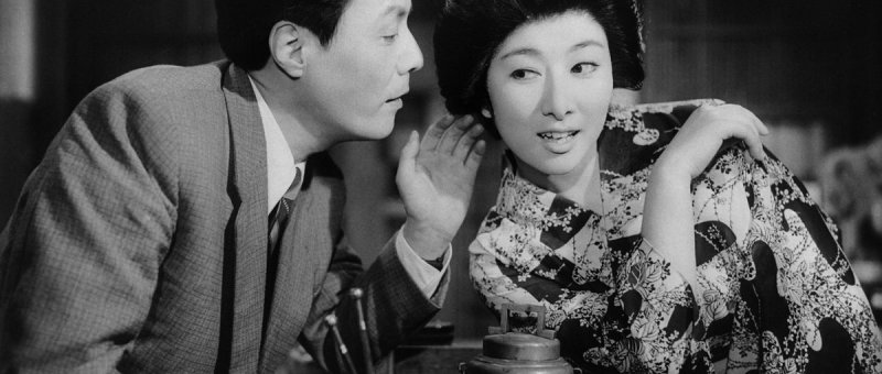 A brief reference to a failed military insurrection in Manchuria sets us firmly in the mid-1930s as do repeated mentions of the ongoing depression which causes additional anxiety to local business owners in a small holiday resort town. Mimicking the novel’s famous opening, Toyoda opens with a POV shot of a train exiting a tunnel into the snow-covered landscape, the hero Shimamura (Ryo Ikebe) sitting sadly gazing out of a window and eventually captivated by the reflection of a young woman devotedly caring for a young man who appears to be in poor health. Meanwhile, another young woman, Komako (Keiko Kishi), gazes at her own reflection in a train station window, waiting once again as if unable to depart. As we discover, Shimamura has returned with the intention of seeing Komako with whom he’d struck up a relationship during a summer trip but is somewhat disappointed to learn that she has since become a geisha.