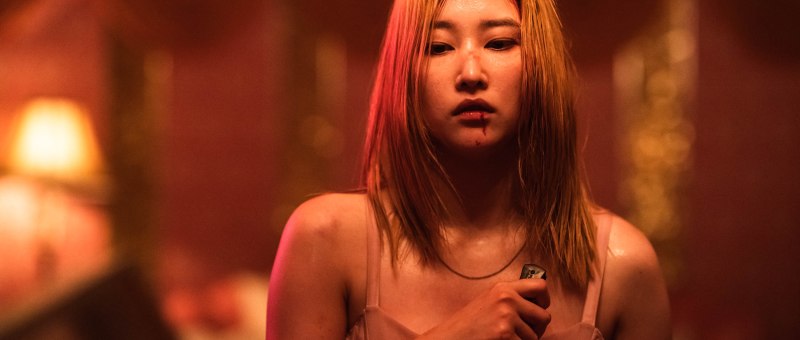 Ok-ju and the girl obviously feel differently. There’s something very satisfying about the way Ok-ju methodically cuts through a host of bad guys without granting them any kind of authority over her. The action sequences are often urgent and frenetic while showcasing Ok-ju’s skills and the lack of them in the male henchmen, but there’s also a fair bit of humour such as her using tins of pineapple to block knife attacks in the convenience store opener. The film indeed has its share of quirkiness such as the geriatric couple who arrive to supply Ok-ju with weapons but mainly have buckets full of revolvers that look like something out of the wild west before grabbing a flamethrower from the back, while the aesthetic also has a stylish retro feel with its purple and yellow colour palette. Pulpy in the extreme, the film’s stripped-back quality provides little background information and keeps dialogue to a minimum but more than makes up for it in its visual language and often beautiful cinematography.