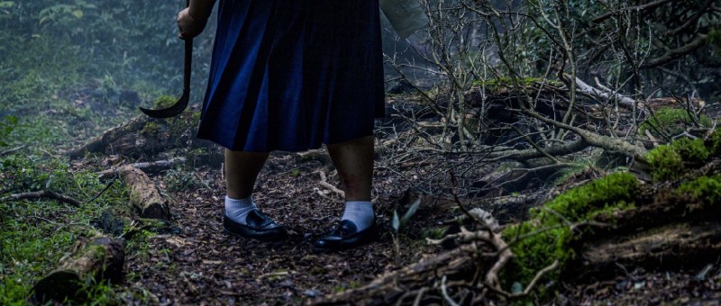 Perhaps this is one reason why Mag Mag rips out the eyes of her victims, though the point is that they were always pointed in the wrong direction anyway. Sanae is obsessed with an artist named Hiroshi (Oshiro Maeda), though he’s made a nude statue of another named Rumi apparently from his imagination and without her consent, which hints again at the self-involved nature of male desire. He does not appear to really notice Sanae (Sara Minami), though Rumi (Mai Fukagawa) may not be lying when she says he found her creepy. After Hiroshi’s death, Sanae begins investigating Mag Mag in attempt to unmask her and avenge Hiroshi, only to ultimately see herself in the vengeful spirt’s sinister cries of “I love you” which aren’t so different from those expressed for Hiroshi while essentially stalking him from her shrine lair.