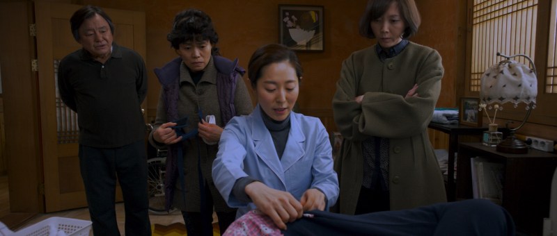Still despite himself, Jae-sik begins to bond with Eun-hae who is after all completely dependent on him. He begins to communicate with her through teaching her words written in hangul by tracing them on her palm, while she seems to blossom in a new world of sensation when the pair embark on a road trip to the country. Though his past chases him, the further Jae-sik travels from the city the less cynical he seems to become no longer interested solely in money but beginning to care about those around him, not just Eun-hae but those he meets along his journey many of whom are also dealing with their own problems which sometimes echo his own as in a single-mother’s attempts to care for her ageing father as his dementia worsens. Lee & Kwon lend a golden glow to the expanses of the rural farmland where Jae-sik and Eun-hae find themselves taking refuge, Eun-hae in thrall to the natural world cheerfully dancing in the rain, smelling the flowers, and befriending animals even as the city snaps at their heels. Avoiding obvious sentimentality, the film nevertheless tells a poignant story of paternal redemption and the blossoming of a little girl finally finding a means to express herself.