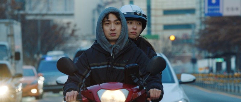 Kyung-hak’s naivety is obvious when it’s clear he’s being ripped off by a friend who sells him a motorcycle for cheap claiming that he recently had it serviced though it sounds and looks like it’s seen better days. Accepting a job as a delivery driver he is resigned to taking the jobs no one else wants as the rookie new recruit, but is quickly frustrated by the way in which he is treated by his customers. The guard at one swanky building won’t let him use the lift in case the take away he’s carrying leaves a smell, forcing him to walk up 19 floors and possibly incur a customer complaint when the food is cold or damaged from its journey up the stairs. He is encouraged to be reckless in order to earn more money, putting his life and those of others in danger while his lack of sleep also makes him irritable and difficult to be around especially with Hye-jin who is experiencing problems of her own after deciding to give up on the government exam and take a job at a tech company.