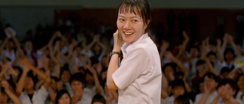 It’s also the serendipitous rain that allows lonely songstress Takako an opportunity to perform having previously declined to do because it’s no fun playing on your own and all her former bandmates graduated the previous year. Moe, the girl who broke her fingers playing basketball in PE leaving the original band members unable to take the to the stage, also gets an opportunity to sing having otherwise been denied a moment of closure in being prevented from taking part in her final school festival. While Moe feels intensely guilty about rendering all their time spent rehearsing somewhat pointless, it’s really the drama between founding members Kei and Rinko that leads to the band’s demise in Rinko’s conviction that it’s “meaningless” to continue while the others decide to go ahead anyway asking Korean exchange student Son (Bae Doona) to be their vocalist because she just happened to come down the stairs at the right moment and said yes because she didn’t really understand what they were saying.