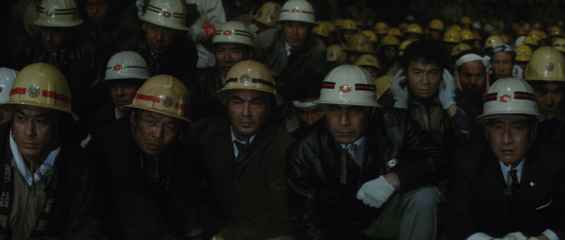 But then there is a definite and literal pollution signalled by the arrival of the prospectors. At a meeting, it’s suggested that the sulphuric acid they’re using to flush out the uranium in inaccessible areas of the mine could contaminate the local groundwater which is a problem when many families are still taking their water from wells but they all laugh it off. Sometime later Ryuji is horrified to see dead fish floating in the river, while his own in-laws, the older generation of the Kenmochi family, are also killed by ingesting contaminated water. A rumour arises that the culprit is the Tarumis who have poisoned the wells out of spite, and when Ryuji tries to raise the alarm after getting a positive result for sulphuric acid in the water supply the company tell him to pin it on them instead.