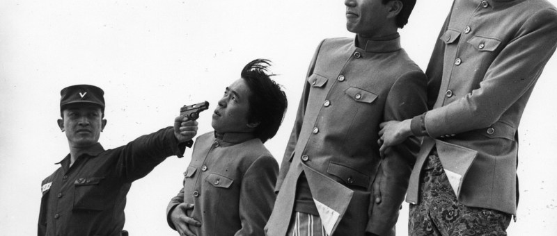 What transpires is a surreal adventure of mistaken identities and rampant xenophobia in which our three students become temporarily transposed with their Korean counterparts – a draft dodging corporal trying to escape being sent to die in Vietnam, and his friend who’s come with him in the hopes of getting into a Japanese university. The third student, “Beanpole”, gets to keep his “Japanese” identity as a kind of control, but finds himself punished alongside his “Korean” friends as they face the harshest of punishments in this increasingly cruel and arbitrary world.