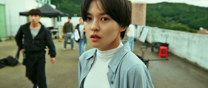 Because things are very wrong on the outside too, Si-yeong even ends up running into a gang of murderous corrupt cops paranoid she’s found their stash of stolen drugs while otherwise pursued by riflemen apparently employed by a vengeful CEO. It’s true enough that we don’t know what’s going on for most of the film, and part of that may be that Si-yeong doesn’t know either because her mental state is unstable. We’re not even really sure if Chae-yoon is real or merely Si-yeong’s projection of her internal conflict, dressed as she is in the same outfit and with the same haircut to the point the two women are often barely distinguishable. Perhaps it’s this unpleasant memory that Si-yeong is trying to avoid, though it’s clear in very general terms that she’s running from something as much as she’s being chased and that her flight may be orchestrated to bring her to a specific location whether physical or spiritual.