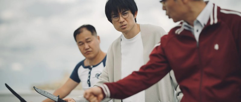 Which is all to say he’s under a lot of stress, and if he did just hallucinate the ghost of the man who died in place of him, Tomohiro (Bokuzo Masana), that would be understandable. Tomohiro has unfinished business, and thinks that Ippei should take care of it for him seeing as he technically saved his life, but what he wants him to do is kill the abusive ex who’s started stalking his daughter again now the restraining order’s expired. The film sort of suggests that Wakamatsu (Yutaka Kyan) became violent because of these same stresses after losing his businesses during the pandemic, but nevertheless he’s a frightening and controlling presence while Aya (Erika Karata) is quite clearly terrified of him. Once again, when Ippei interrupts Wakamatsu in the street trying to force his way into Tomohiro’s house, another passerby picks up his dog and walks on without stopping to check if everything’s alright. Perhaps it’s fair enough that they didn’t want to get involved in a dangerous situation, but to speaks to the ongoing indifference of society in which few are willing step in and help women like Aya and men like Wakamatsu are allowed to go on bullying and tormenting those around them.