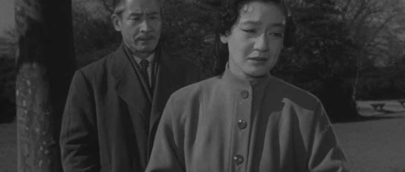 By contrast, we get the impression that Fusako, who has two children already, will likely return to her husband. Shuichi has the talk with his brother-in-law his mother hoped he would, but bonds with him in male solidarity, excusing his affair while advancing that Fusako doesn’t understand that he is merely working hard for their family laying bare a fundamental disconnect in the thinking of men and women further borne out by Yasuko’s assertion that men and women deal with sorrow differently. It’s this series of disconnects, between men and women, parents and children, that Shingo is beginning to bridge only to be confronted with his own patriarchal failures. While he and his wife are seemingly happy enough, he brushing off her self-deprecating remark that he was “unlucky” in marrying her only because her prettier sister died, his children’s marriages have each failed. His failure stands in for that of his generation, realising that he all he can do for them now is set them free. Meeting Kikuko in a park with wide open vistas, oddly like the final meeting of doomed lovers aware they must now part, Shingo vows retreat, planning to retire and move to the country with his wife as if liberating the youth of Japan from the oppressive social codes of the past in ceding the “open prospects” of the post-war society to his surrogate daughter in order that she might at least seize her freedom to chase her own happiness.