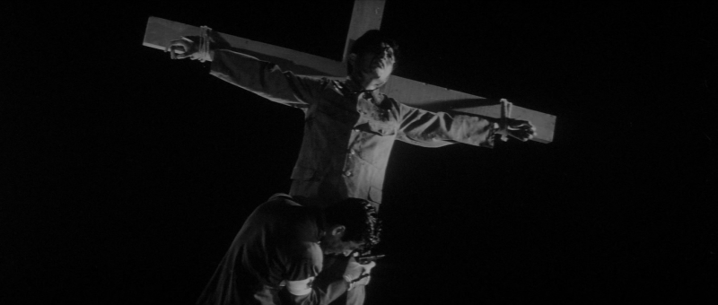 It’s this sense of futility and resignation that seems to overtake Shiratori who knows he cannot escape his fate. To desert to is be killed anyway or to experience a spiritual death like Taki. He had introduced a friend, Hanzawa (Shinichi Chiba), to his sister and the two had become close, but he is forced to abruptly break up with her because he knows it’s unfair to string her along when he’s been sentenced to death. Reiko (Sumiko Fuji) will lose her brother and her boyfriend on the same day. Hanzawa and the other men visit a brothel on the night before their mission where they are treated as “gods”, though he sees only irony in the situation in which they are more like human sacrifices offered in prayer for an impossible victory. Their deaths will have no real meaning and are really only intended to instil fear in the enemy and weaken their morale rather than cause actual material damage to their fighting capability. Making use of stock footage, Nakajima freeze frames a plane in flight and points out at that point the men inside were still alive before cutting to a title card confirming the war ended just four months later. The title card at the beginning dedicated the film to the souls of those who died in the Pacific War, though it’s perhaps as quietly angry as it was permitted to be in 1967 in the senseless sacrifice of these men’s lives who were shamed, tricked, or forced at gunpoint into their cockpits and told they were disposable while those who stayed on the ground cheered and whooped at the grim spectacle of death.