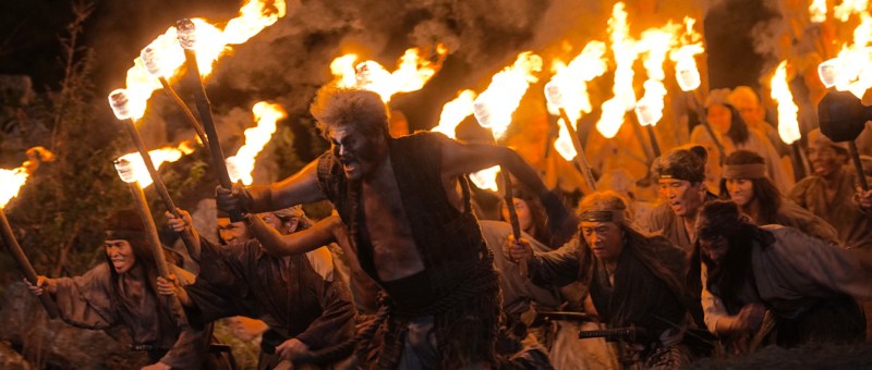 But to do so means he’ll have to betray his oldest friend and that he likely won’t survive. Still he thinks someone’s got to do something about this rotten world and sees a better one beyond it if only they can throw off the yoke of the samurai class that thinks peasants are the same bugs to squeezed dry under their boots. That’s perhaps why he trains a young successor, knowing that can’t remake the world with just this one assault on the mechanisms of government and that even if they get rid of the drunken fool Lord Nawa (Kazuki Kitamura), someone not all that different will pop up in his place. “Tax is supposed to improve people lives,” one of the revolters screams at a young soldier, not pay for a new wing at the palace, though it’s a lesson the young shogun seems incapable of learning even as the city burns all around him.