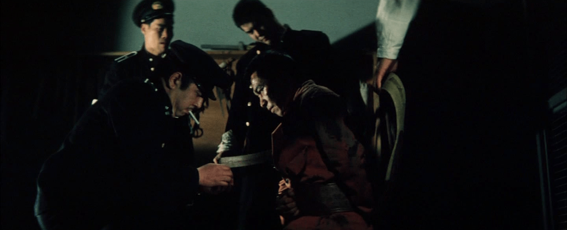 That’s a tip off he receives from Nakatsuka (Kiyoshi Nakajo), an old mentor from the defence academy who now works for the Cabinet Intelligence and Research Office, the nation’s primary intelligence authority. Nakatsuka is also seen meeting with the police chief who tells him that the yakuza have been complaining that police are encouraging the gang war rather than trying to stop it. So much the better, Nakatsuka says, let them massacre each other then take them all out right before the election to manipulate public opinion. If the election goes their way, the police chief will have additional budget to hire more policemen. Thus Takanashi also becomes a kind of pawn in cynical political machinations conducted by Nakatsuka and CIRO who are helping him both out of friendship and sympathy and because it is useful for him to make use of Takanashi and his desire for revenge. Only veteran policeman Uchino (Tetsuro Tanba) smells a rat, but even he later lets Takanashi go after making a moral judgement that justice has been served and Takanashi hasn’t really done anything wrong.