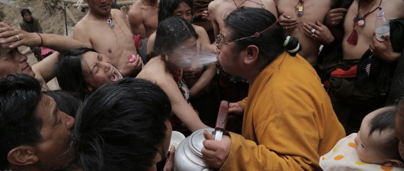 True to his name, the Lama keeps the kettle boiling while a collection of visitors gather outside his home waiting for the climactic purification ritual in which men and women remove their shirts and endure the scalding water on their bodies, some directing it to the site of their ailments, baring their knees or ankles. Others have brought their children who scream in pain and terror, the water clearly far too hot for them to bear while the Lama spits out the last of the boiling liquid into the eyes of those there afflicted. In contrast to the traditional setting, many of the villagers can be seen photographing or filming the event on their smartphones to record the occasion. As if to refute the final image, however, of the Lama overseeing the landscape as the villagers return home, Lu breaks the intense Japanese folksong playing over the end credits with a whimsical, snow covered scene in which a cow eventually appears and fixes its gaze directly into the camera lens. An enigmatic exploration of a disappearing way of life in all of its various contradictions, Boiling Water Lama finds no answers to its central questions leaving only the Lama as he metes out his judgements to all who come seeking his advice.