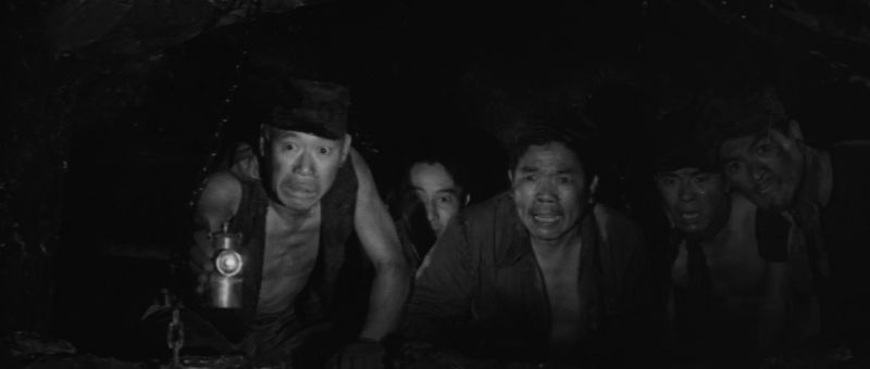 In the case of the young Yamaguchi (Shinjiro Ebara), the film hints at the way the industrialisation presented by the mine has disrupted local communities as farmers’ sons leave the land for the promise of better pay for working underground. Yamaguchi is taking the job because his father is ill with some kind of neurological complaint, possibly caused by industrial pollution, and he has argued with his brother presumably about money and the responsibility of earning his keep. While underground, he runs into a friend of his father’s, Banno (Takashi Shimura), who tells him that mining is not a job you can do for life and he himself seems far too old to be doing such physically strenuous work though he is the only one almost able to stand when the men are eventually lifted from the mine.