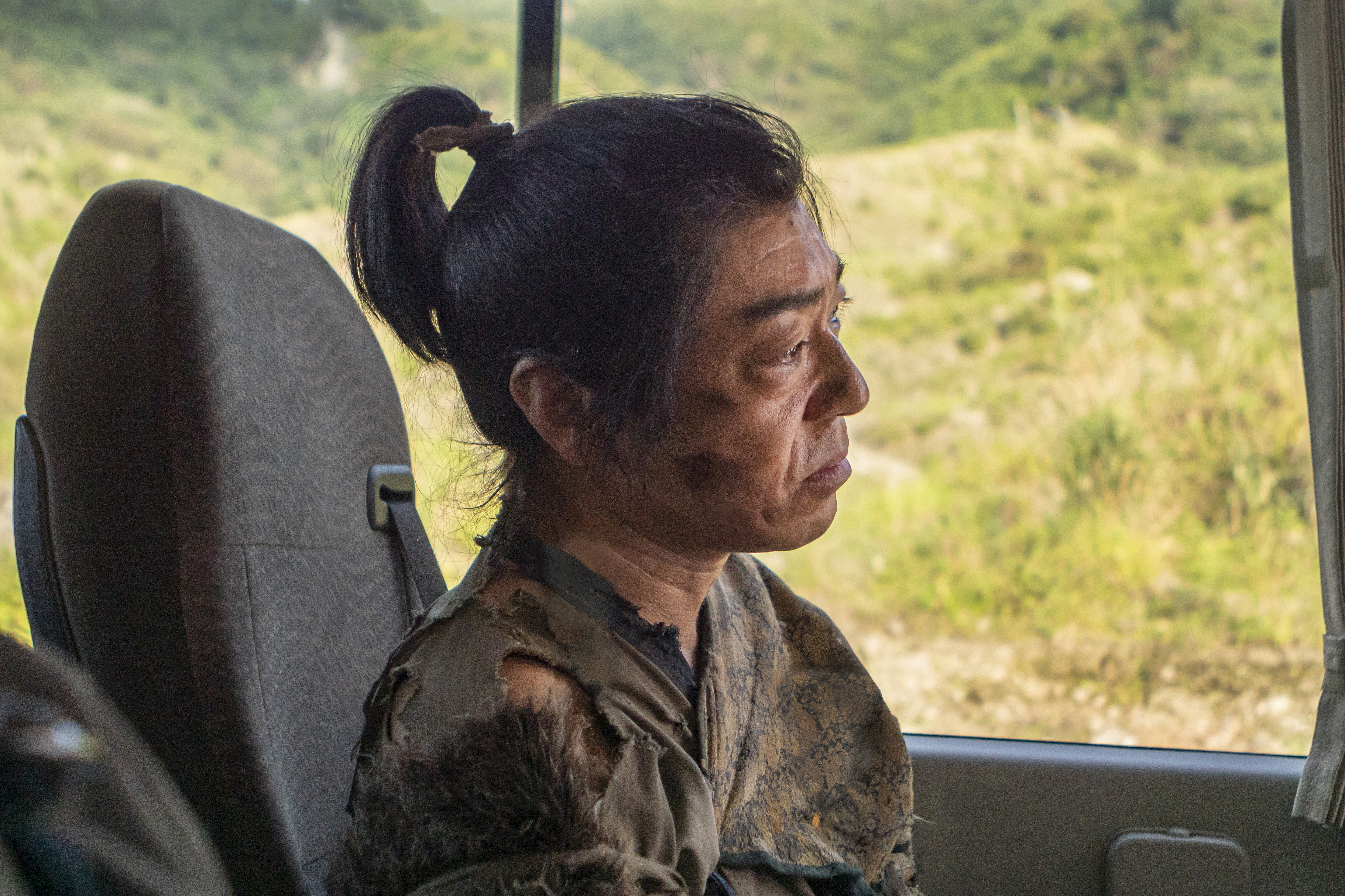 Along the way he gives hints of his loss of selfhood, earnestly replying that he doesn’t know when a fellow extra quizzes him on the watch he’s wearing and how he got it but his discomfort could stem from several places and it’s never quite clear how much of an interior life Miyamatsu creates for his various roles, whether he really does just see them as performers of an action, is playing “himself” as he peers over a police cordon at a crime scene, or is a fully fledged person with an individual history. Later he tells a colleague who admires the way he fills in forms at his part time job working at a cable car that he’s always enjoyed the process of filling in a predetermined frame but also that he likes the floating sensation the cable cars give him.