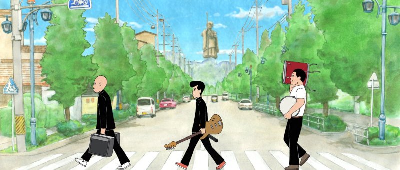 The high school band movie has a special place in Japanese cinema. From the anxious release of Linda Linda Linda to the laidback charms of K-On, music is that rare thing that both brings people together and enables individual expression. Adapted from the cult manga by Hiroyuki Ohashi, Kenji Iwaisawa’s highly stylised indie animation On-Gaku: Our Sound (音楽, Ongaku) is a psychedelic ode to the transportive qualities of musical performance from either side of the stage as its laconic, tongue-tied heroes rediscover themselves through the art of song.