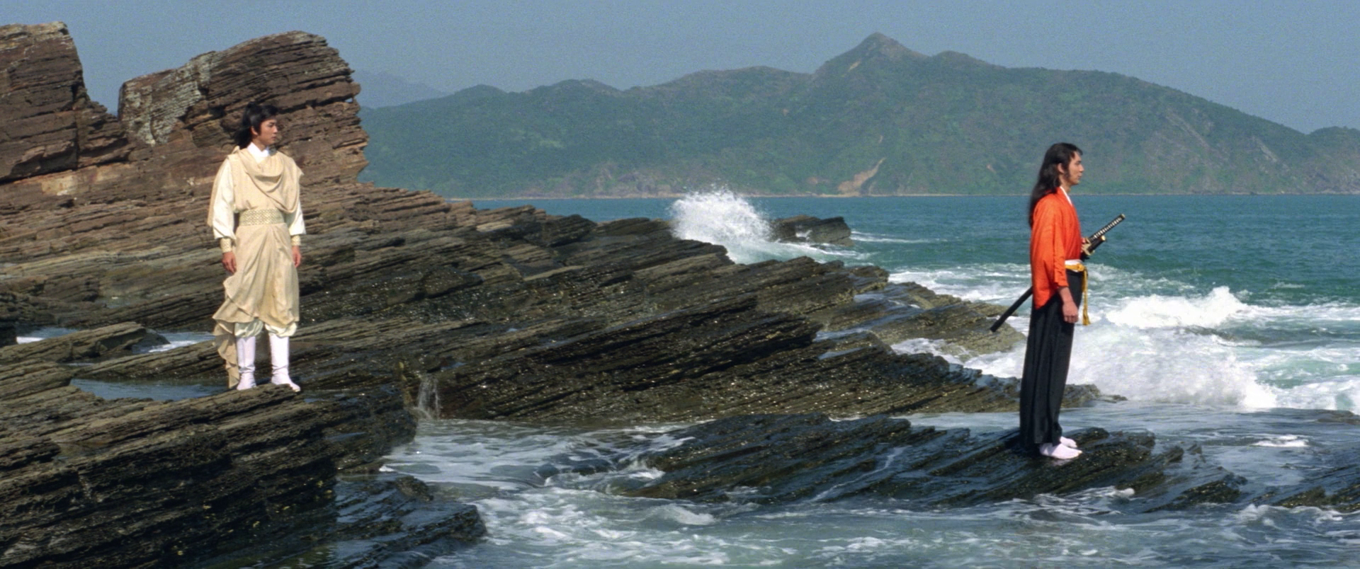 This remains largely unknown to earnest swordsman Miyamoto (Norman Chui Siu-keung) who genuinely believes he’s engaging in a test of skills with a worthy opponent. In contrast to that advocated by the Shaolin monks, the philosophy fed to Miyamoto is that he must win at all costs even if it meant turning a sword on Buddha. His own master challenges him in disguise and is pleased when he is killed because it means his pupil has eclipsed him and there is no greater honour than dying at the hands of a superior samurai. Destructive as he maybe, Miyamoto is no villain for he has a pure-hearted attachment to his code only to have his illusions shattered when he realises he’s just a patsy set up for an easy victory by the shogun who has already cut a deal with the contest’s organisers to have his opponent kidnapped so he’ll have to fight the organiser’s daughter instead.