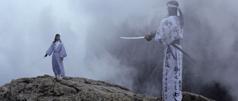 The full-on weirdness of Ching’s action sequences underline just how absurd this world is. Ninjas lurk everywhere including in the sand, while during one fight one giant ninja suddenly explodes into lots of tiny little ones. In the opening raid, they use dynamite for suicide attacks and are later seen flying in massive kites. The shogun keeps all the kidnapped martial artists he was planning to take back to Japan to steal their knowledge in a giant spider web-like network of ropes underground, hanging around until the ninjas load them into palanquins. Nevertheless, despite the obviousness of his use of Korean sets standing in for Japan, Ching injects a degree of realism in a painstaking attempt to maintain authenticity in depicting Japanese sword style. Cutting fast and furious with delirious wire work, the most impressive action sequence may well be that of Sing Lam effortlessly setting up a pair of obnoxious Japanese swordsmen. “Why dwell on determining whose martial arts is better?” a monk idly asks, and indeed there is no real answer save a vicious cycle of violence of retribution that remains unfinished even at the nihilistic conclusion.