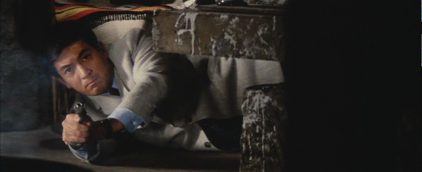 The Chinese arms deal is linked back to a sense of cold war paranoia which spreads to the young students protesting the ANPO treaty. Takimura’s boss calls them “terrorists” unable to understand how there can be Japanese people who could do this to their own country seemingly unaware of the minor irony in his statement. Meanwhile, he prepares to sacrifice Takimura as need be, callously remarking that a man with two countries who can’t choose between them can be dangerous while admitting that his services have been useful to the Americans but they may not always be so. The Americans meanwhile make crass racist remarks while chasing down the Chinese spies, taking altogether too much pleasure in eradicating them while the hitherto stoical Takimura looks on with disapproval mixed with hurt and shame beginning to wonder if he’s really on the right side. “You and the US will never defeat us” his rivals insist, revealing a mind-blowing piece of info that sets Takimura on a collision course with fate.