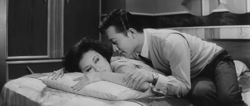 In some senses, it doesn’t really matter. The society here is so inherently corrupt that no one is really “innocent” except perhaps the pure-hearted roommate who remains shocked and disgusted by the results of his police detective friend’s investigations and innocently in love with the chairman’s unobtainable daughter. The ambition that comes from the widening wealth gap is instantly on display as the film opens with Lap in bed with Tai-Giok but brushing off her suggestions that they marry by reminding her she’ll be the most comfortable of mistresses when he marries the chairman’s daughter. In another kind of film, they would be our central couple – their pure love corrupted by post-war greed, but we later realise neither of them is very much in love at all and their “relationship” must be based on some other factor. Lap isn’t betraying Tai-Giok to marry the boss’ daughter, though there may be other casualties of his all too willing complicity in an increasingly amoral economy which sees him gleefully accepting kickbacks and wining and dining clients in restaurants where you can hire scantily clad dancers to entertain you while you eat.